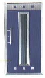 Haustüre aus Alu System Schweiker , Flügelüberdeckende Aluminium Türfüllung , außen mit Edelstahlapplikationen matt gebürstet , innen Alu Ornamentrahmen Farbe wie Türfüllung , Verglasung außen VSG innen Master Carre weiß