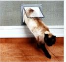 Neher Insektenschutz Katzenklappen . Die Katzenklappe kann im unteren Bereich einer Drehtüre eingefügt werden . Durch ein spezielles Katzengewebe ist die Lebensdauer des Gewebes gewährleistet .